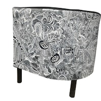 This is a stylish Black and White Designer Arm Chair featuring unique modern self-made doodles.